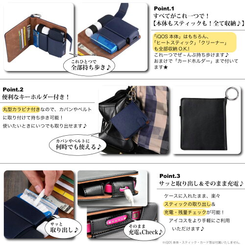 商品内容 iQOSがこれ一つでO.K! 本体&ヒートスティック・クリーナーまで全部収納! ホルダー付き iQOS 対応 手帳型ケース ※ iQOS 2.4 Plus にも対応♪