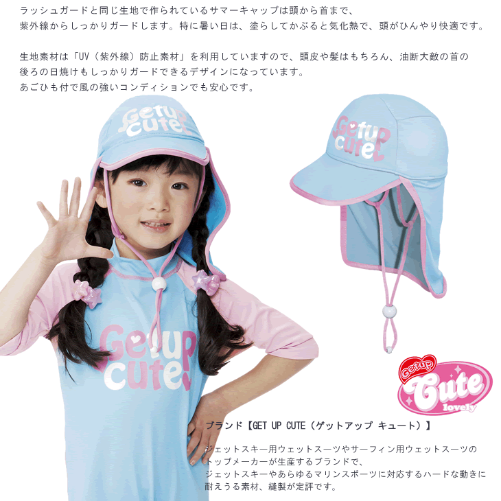 子供用 サマーキャップ 帽子 女の子 海 プール 紫外線 GETUP CUTE ゲットアップキュート サマーキャップ