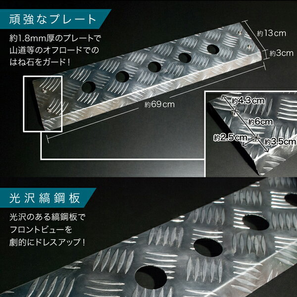 ▼ 車 種 適 合 ▼車 名型 式年 式備 考 ジムニー JB23W H10.10〜 - 製品の主な特徴■頑強なプレート約1.8mm厚プレートで山道等のオフロードでのはね石をガード!■縞鋼板縞鋼板仕様でフロントビューを劇的にドレスアップ!■フロントバンパー交換と一緒にバンパー交換した後のバンパー下のカスタムに最適!【確認事項】※取付け時にバリ等でケガをしないようご注意下さい※フレームにドリルで穴を開けてボルトで固定する必要があります※取り付け後の交換・返品は一切できません製品概要内容穴ありタイプスキッドガード×1--送料・納期・同梱について送料について送料無料!※沖縄県・その他離島地域は別途送料が必要です(離島は代引き不可)※佐川急便又はゆうパックでのお届けとなります。