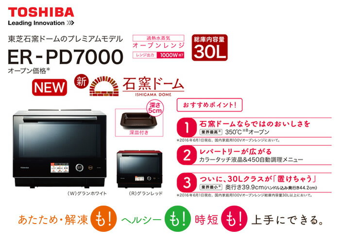 東芝【スチームオーブンレンジ】 ER-PD7(W) グランホワイト 【石窯ドーム】 [ERPD7W]【ラッピング不可】