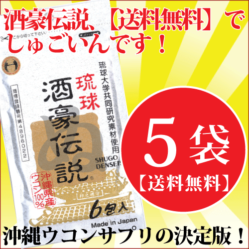 ★ポイント5倍【送料無料】琉球酒豪伝説6包入り×5袋セット⇒発売15年の実績を誇るウコンブランド!沖縄産ウコンの力で忘年会、二日酔い、飲み過ぎを乗り切ろう!【琉球酒豪伝説】【酒豪伝説】